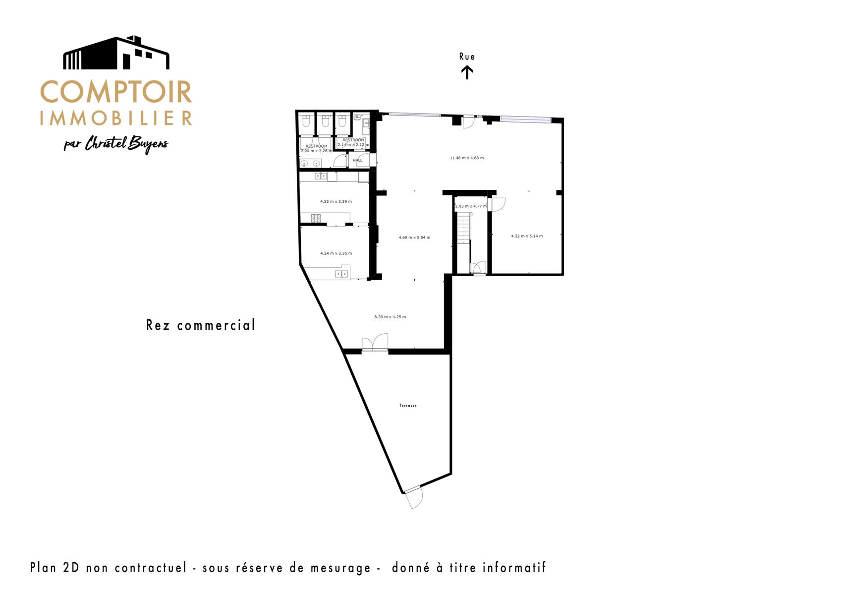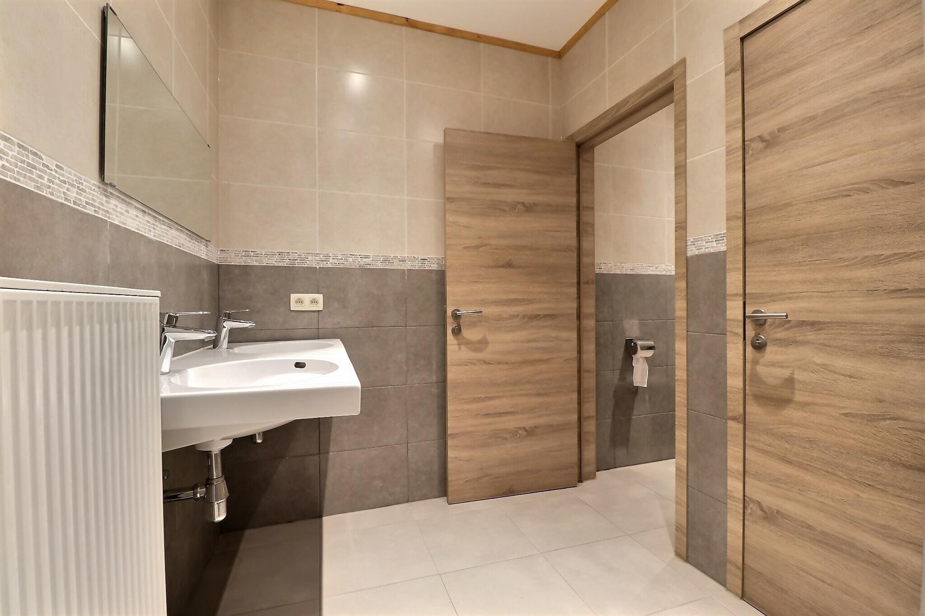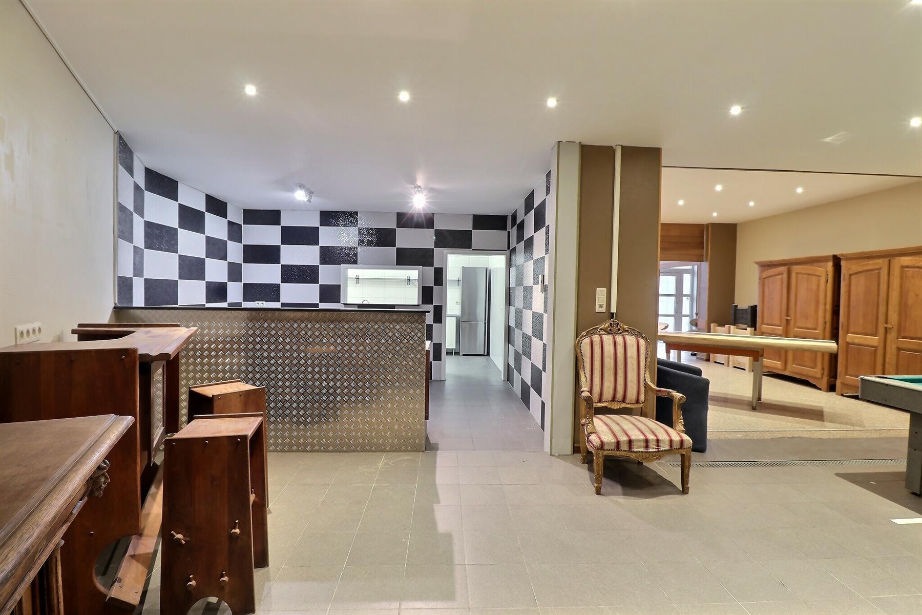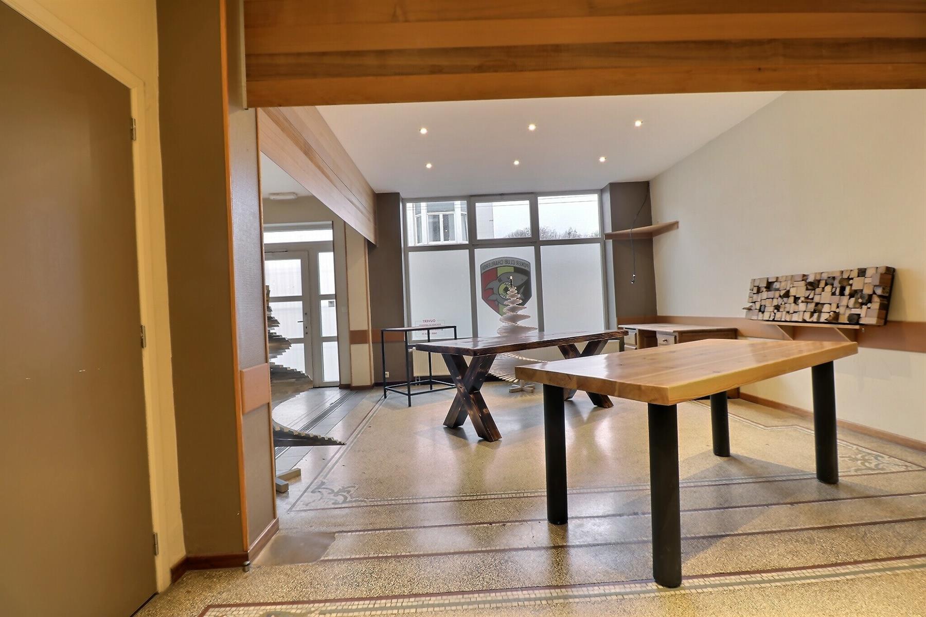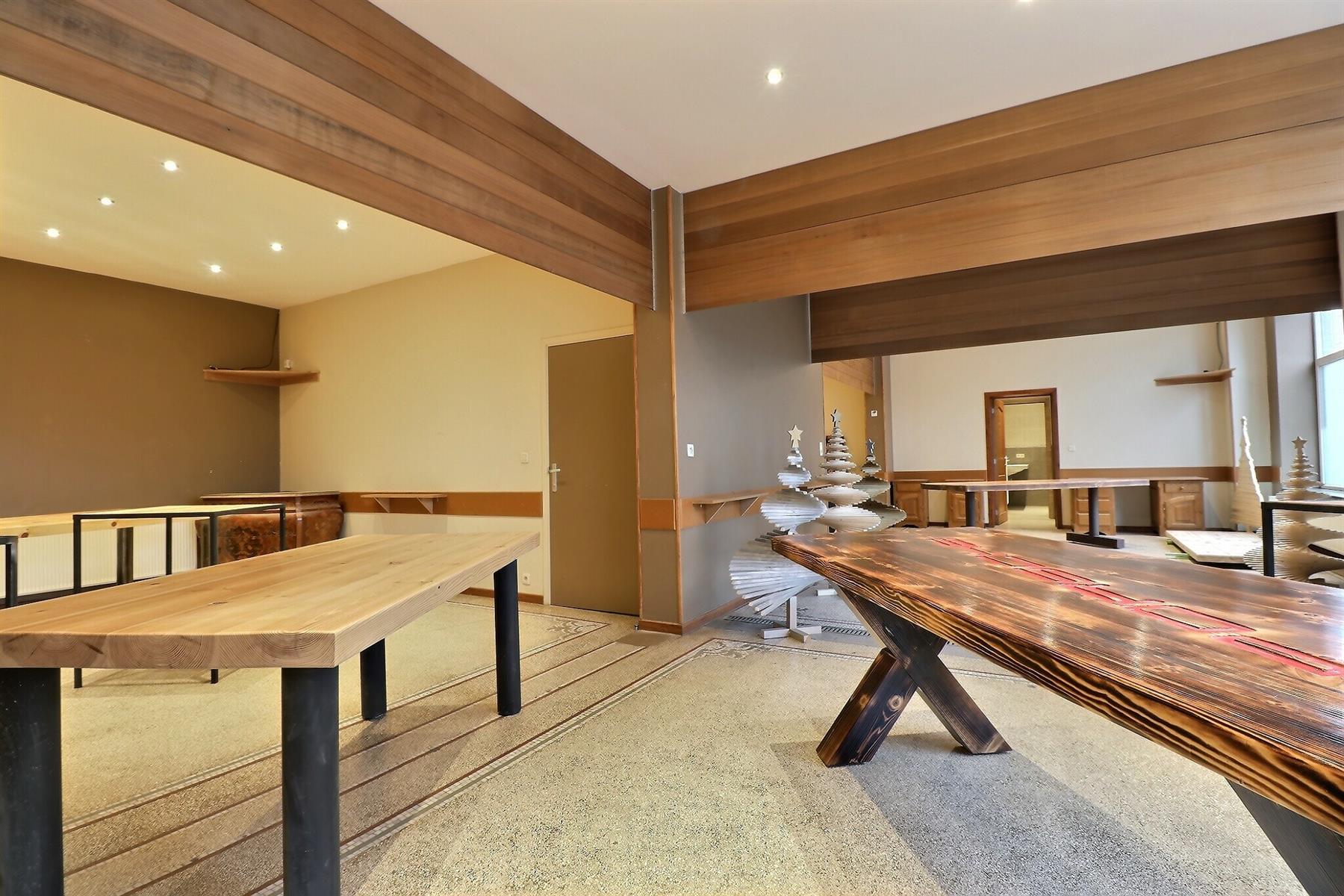 Une pièce centrale de +/- 167 m² proposant une vitrine de +/- 7 mètres - Un espace sanitaires homme/dame - Une réserve actuellement équipée comme bar et cuisine - Une cave - Une salle de douche en sous-sol - 3 parking privatifs à l'arrière du bâtiment - 1 Terrasse de +/- 24 m².