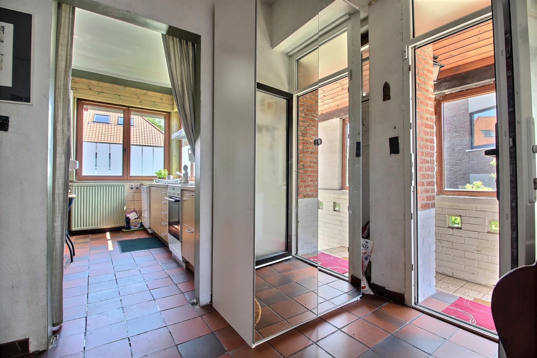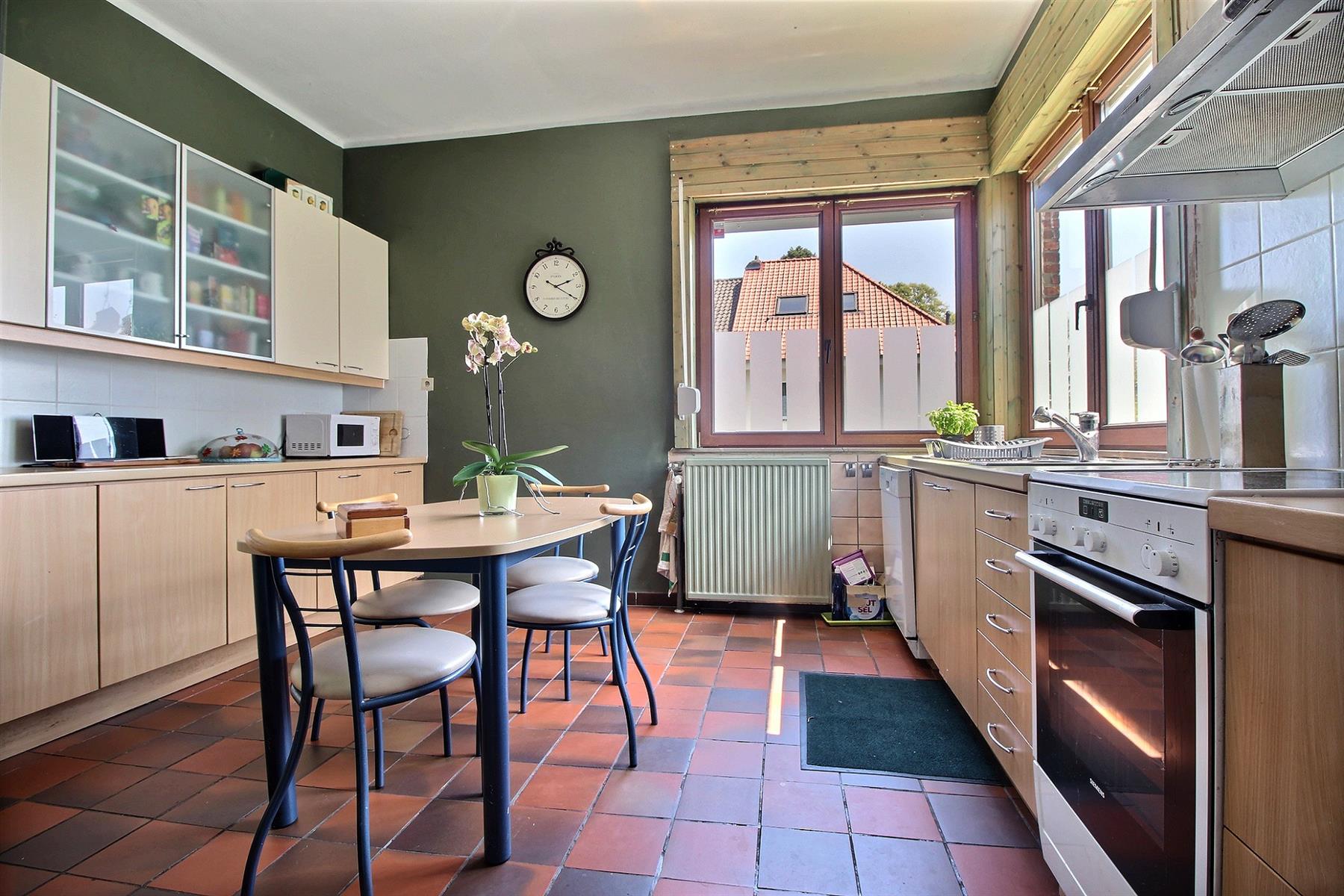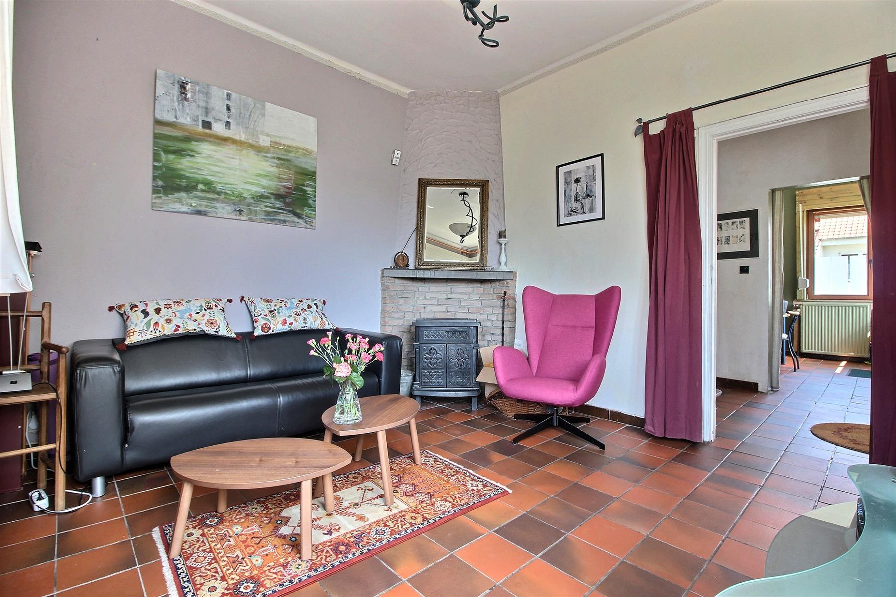Sa superficie de +/- 130m² habitable vous propose au rdc un petit salon chaleureux avec son petit poêle au bois, un espace cuisine , fonctionnelle et équipée, hall d'entrée.