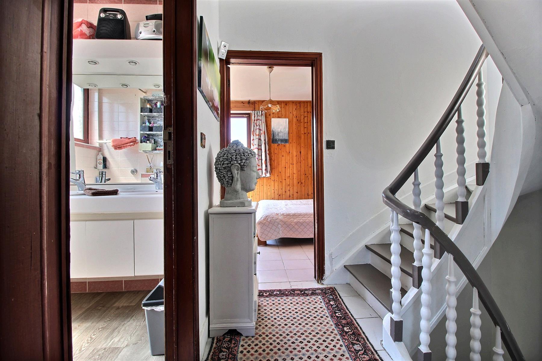 En poursuivant votre visite, à l'étage vous découvrirez deux chambres et une salle de bain, en empruntant le hall de nuit, vous accéderez au grenier aménager donnant sur deux autres pièces. Toute la maison est cavée, sur une belle hauteur d'homme, une seconde pièce d'eau et un accès direct via une baie vitrée au jardin.
