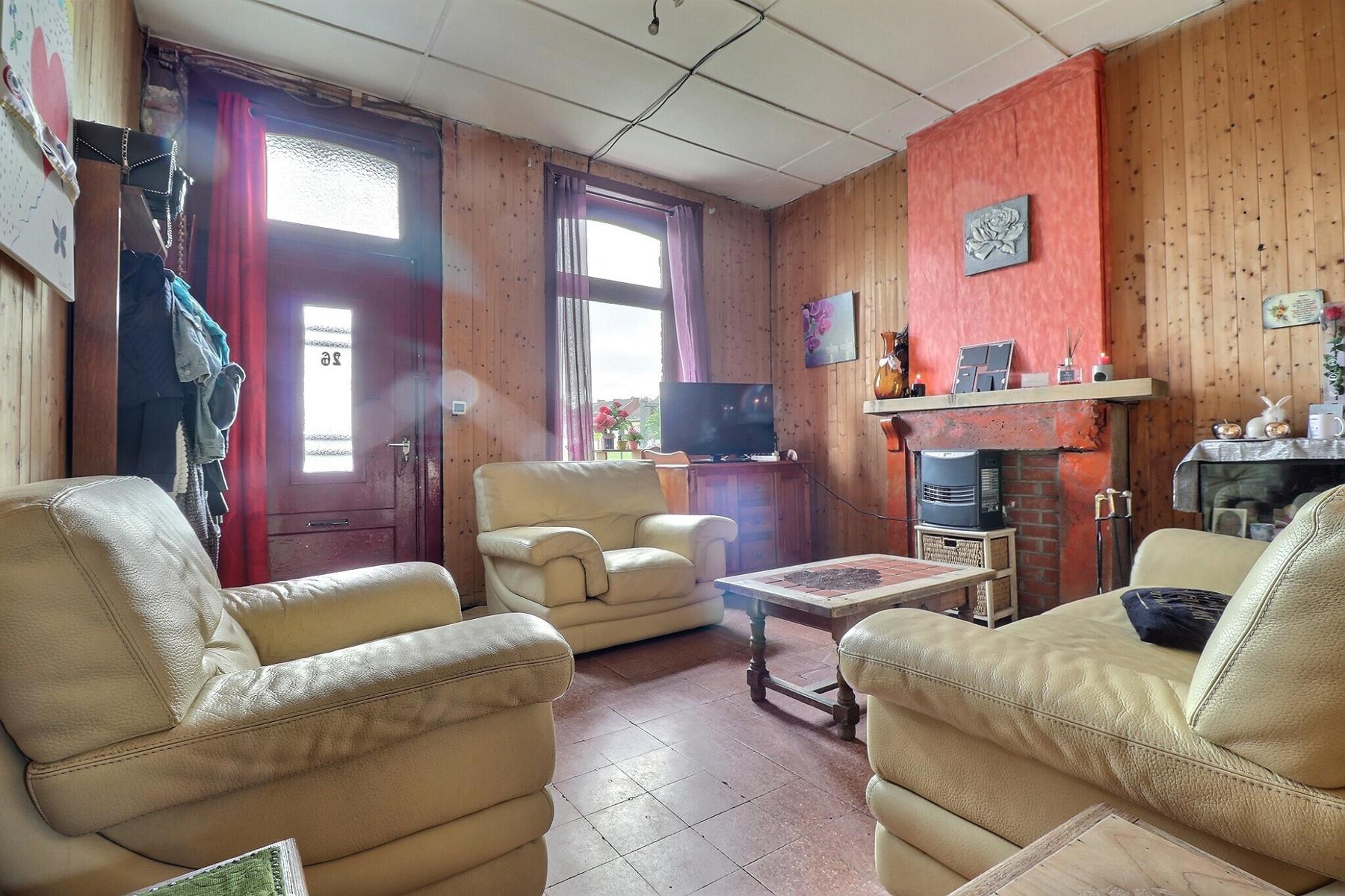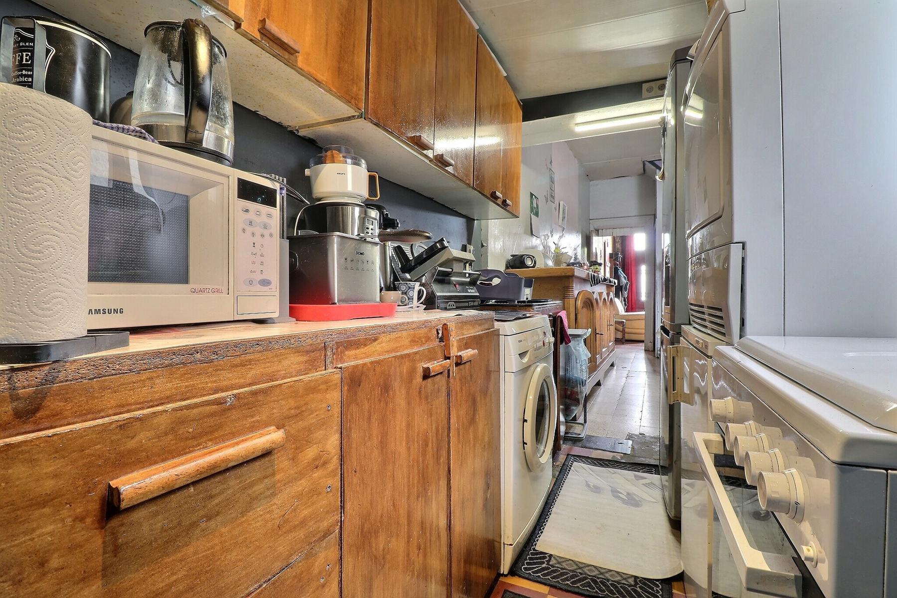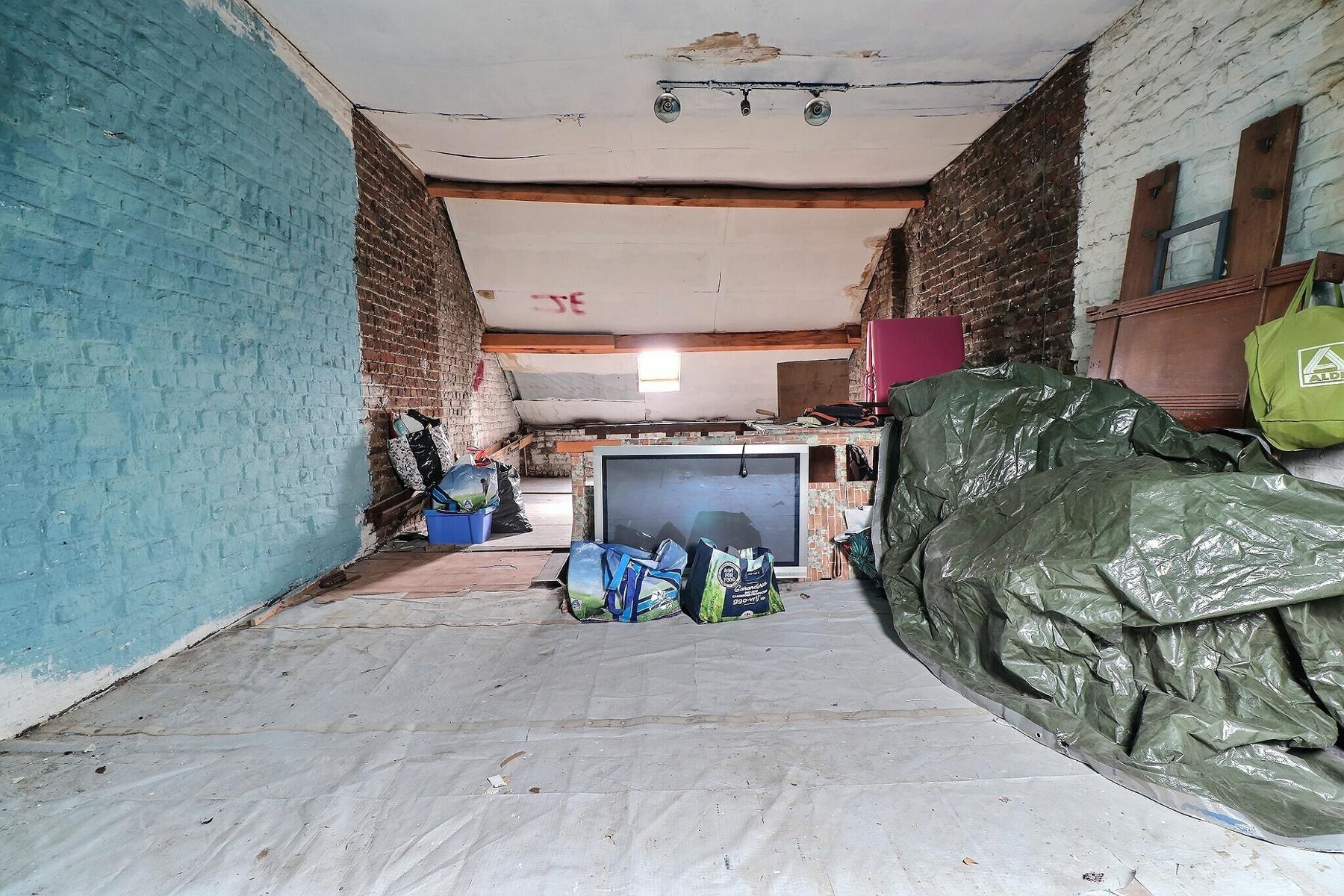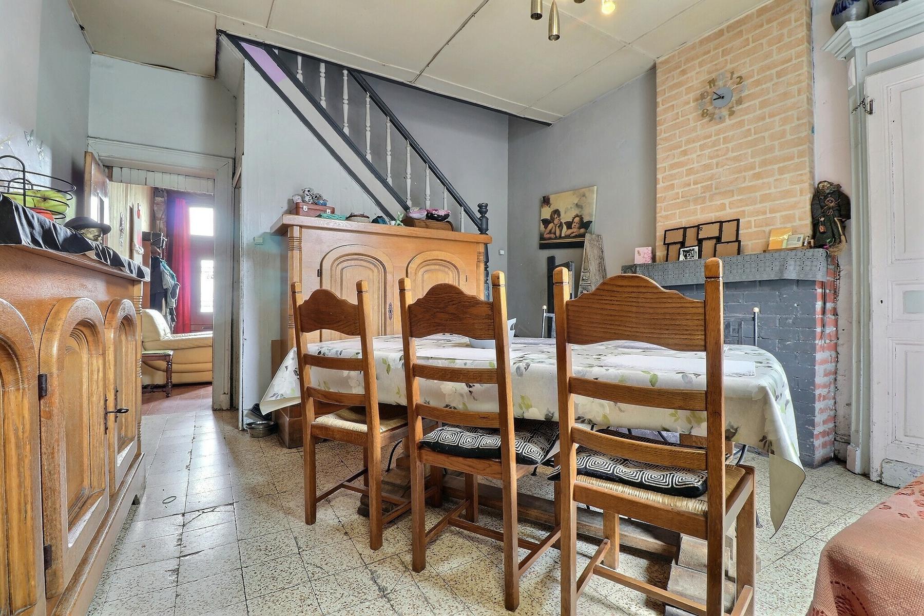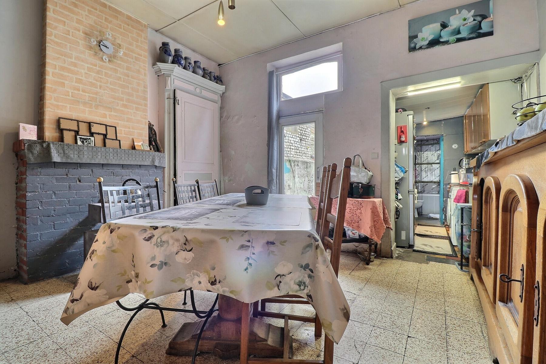 Maison ouvrière de 124m² (surface plancher chauffé - selon PEB) à rénover avec cour fermée, composée de 2 chambres, grenier aménageable, salon, salle à manger, cuisine, salle d'eau, caves.