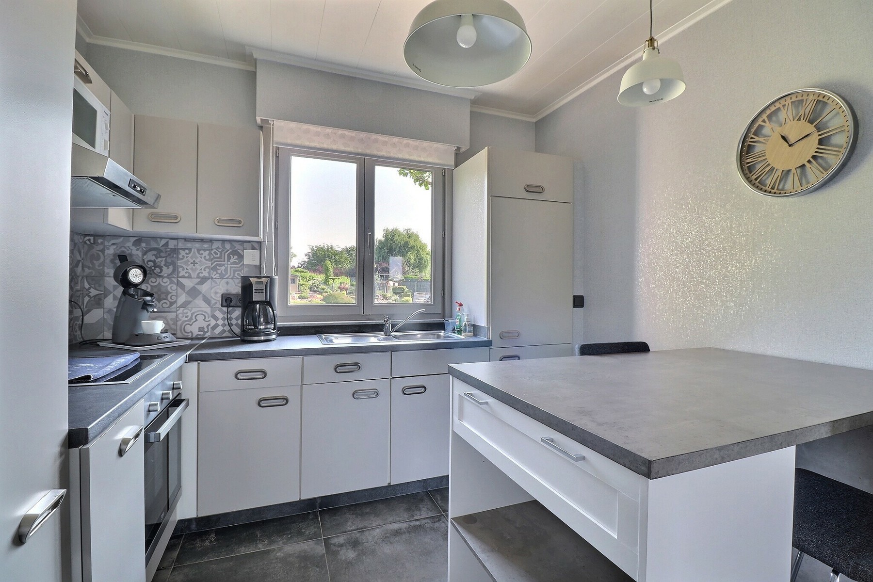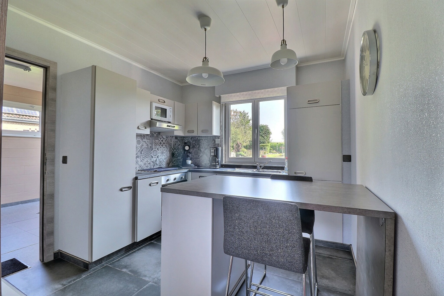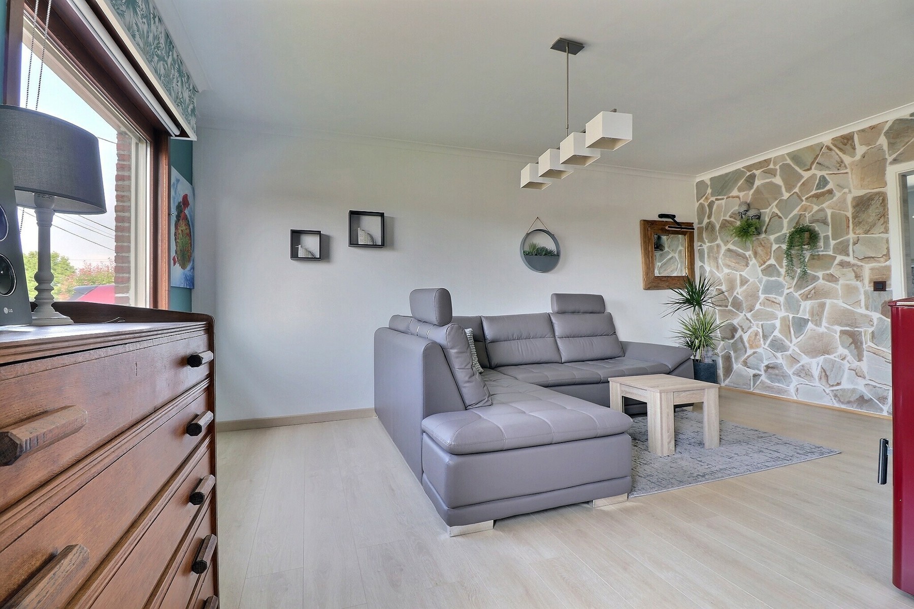 Rénovée dans son ensemble, elle vous propose 2 + 1 chambre/bureau, living ouvert, une cuisine récente et équipée, garage carrelé actuellement utilisé en buanderie.