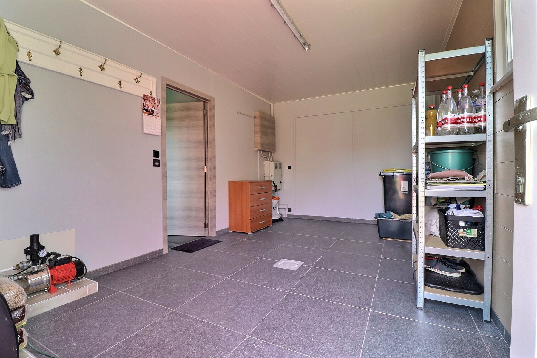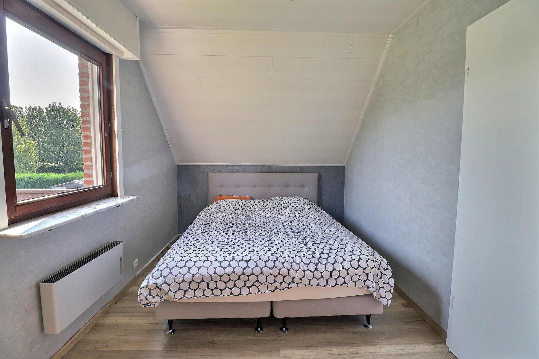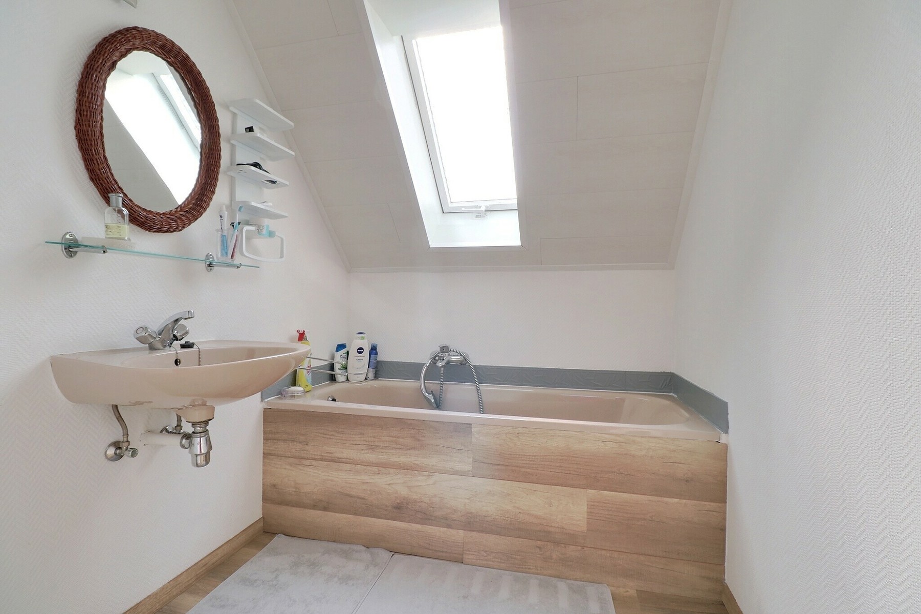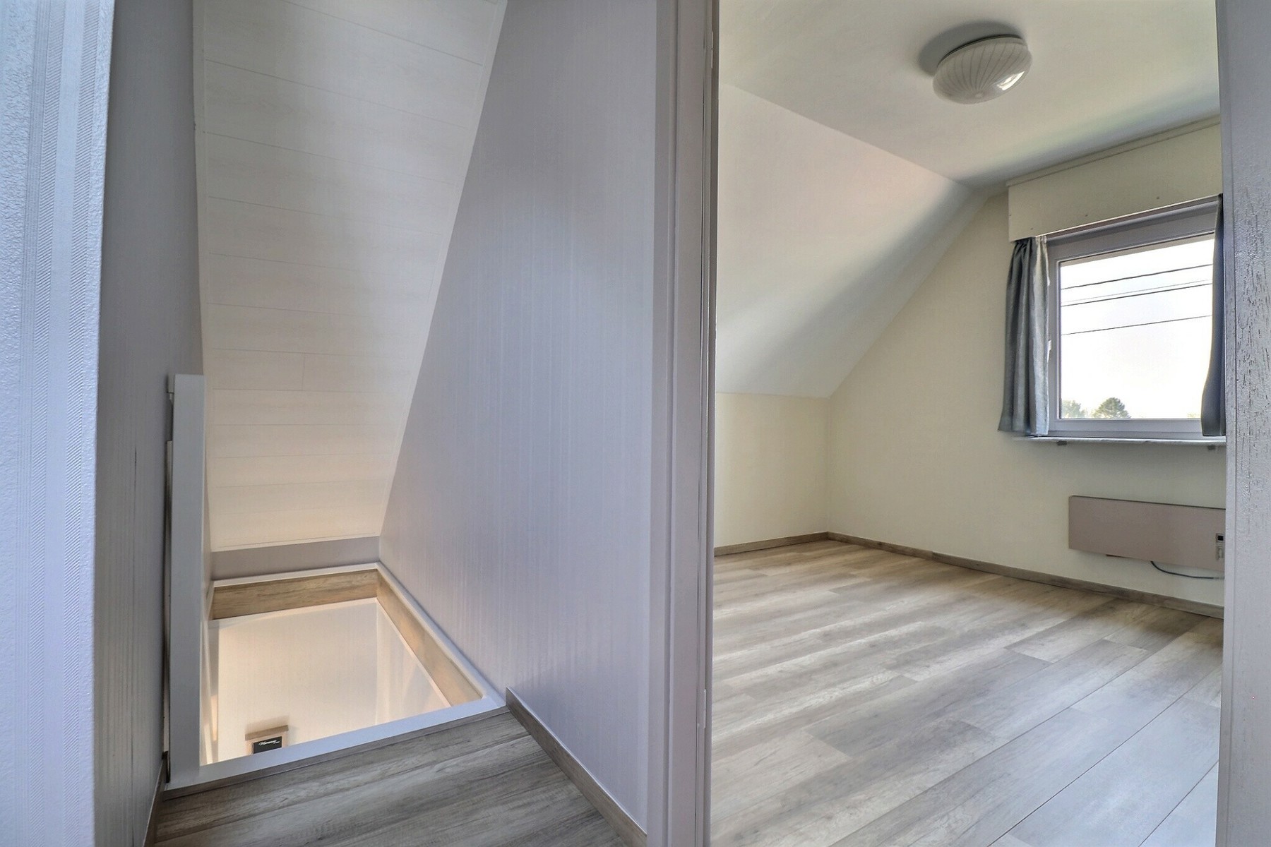 Rénovée dans son ensemble, elle vous propose 2 + 1 chambre/bureau, living ouvert, une cuisine récente et équipée, garage carrelé actuellement utilisé en buanderie.