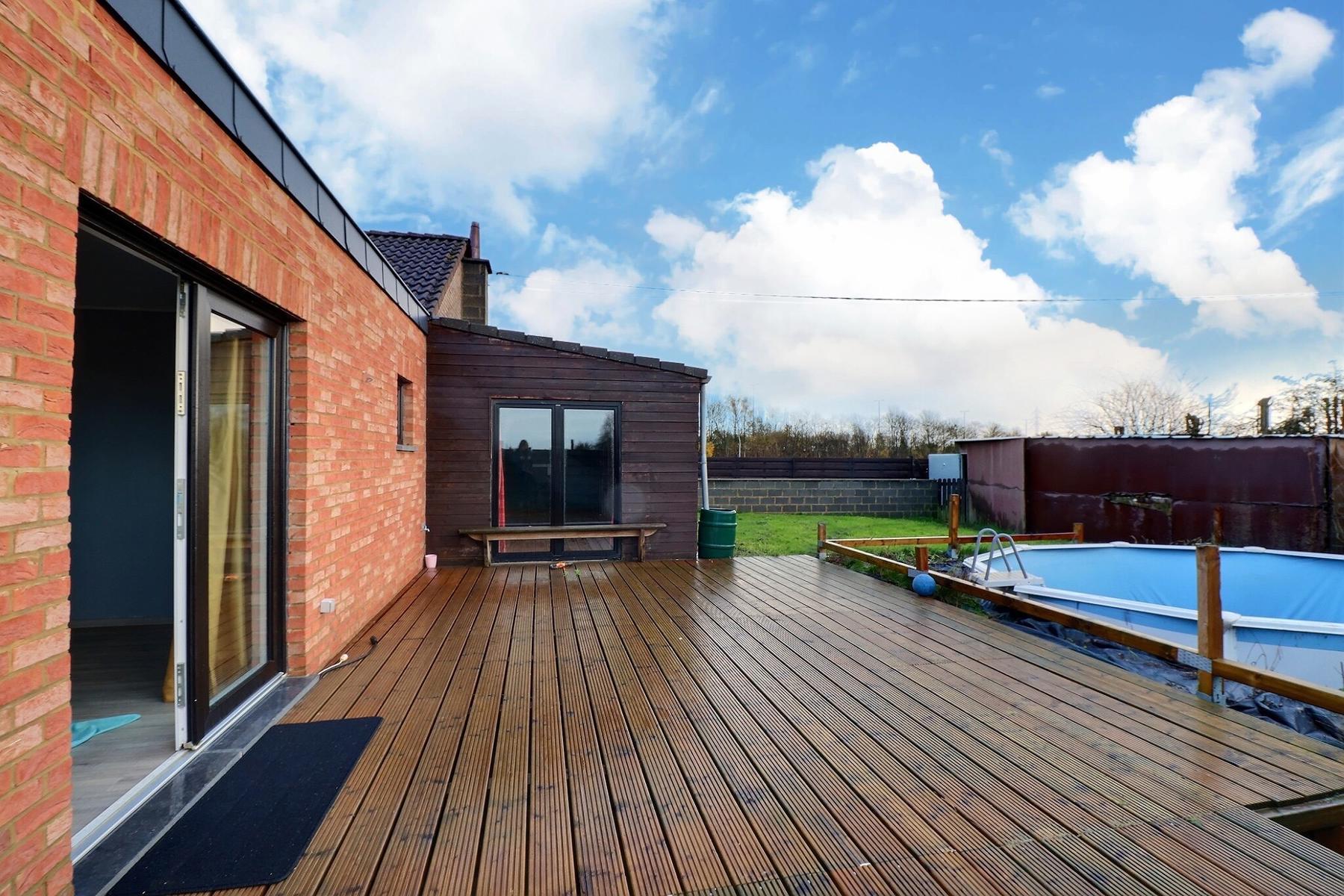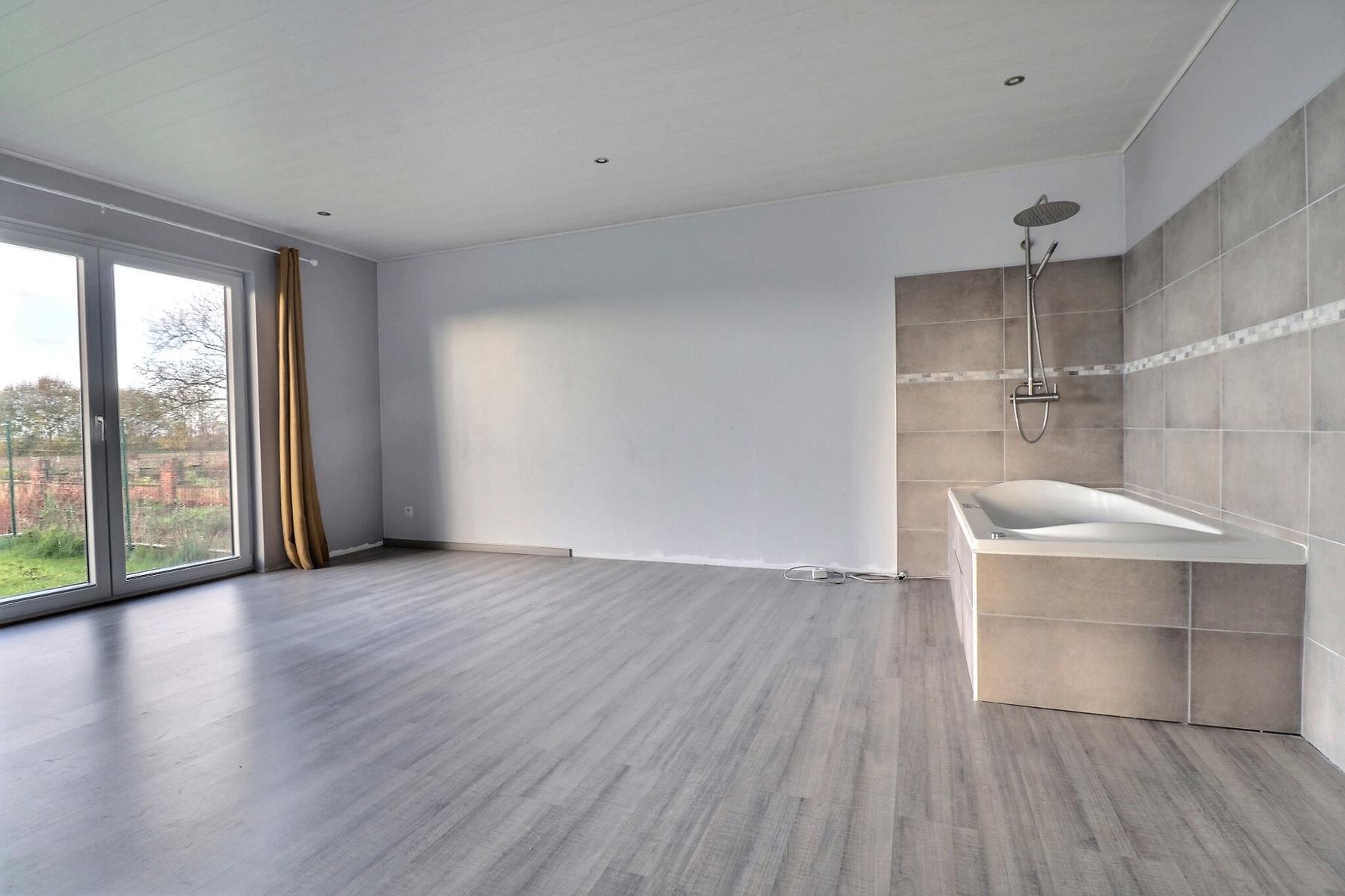 La construction récente d'une partie de la maison vous permet de profiter d'un living de +/- 45m² et d'une cuisine ouverte et spacieuse.