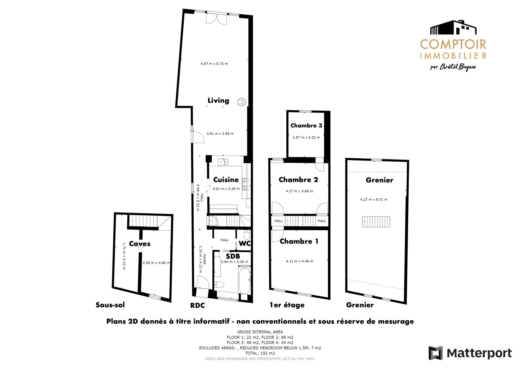 Informations, surfaces et photos donnés à titre informatif et non conventionnel.