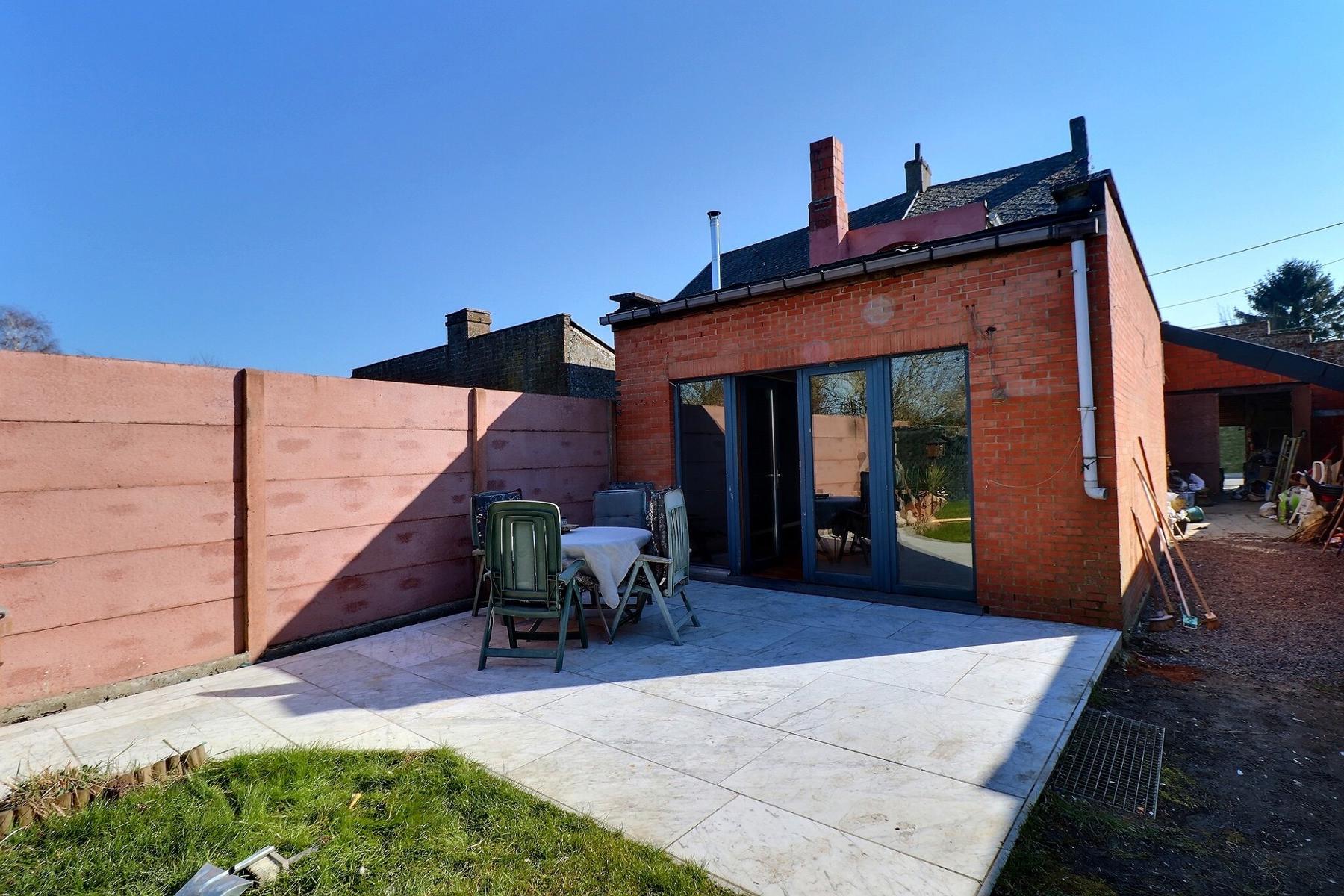 Maison 3 façades à rénover avec jardin, garage et terrasse sur 4 ares de terrain.